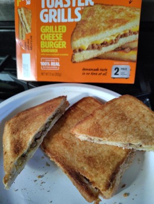 [This review was collected as part of a promotion.] These grilled cheese cheeseburger sandwiches were very tasty! Of course the picture on the box looks like there is more in it than there is but I think if there was any more I’d be worried about it dropping into the toaster and making a mess. I think the cooking process is straightforward, quick and easy. I would definitely try these again.
