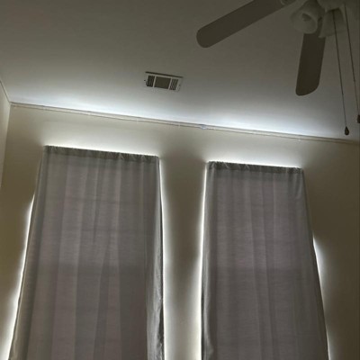 It keeps so much light out even though it’s white. Hangs nicely. Looks great. It is only one panel, not two.