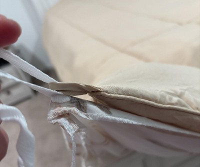 Bought on December 29, it's a light comforter so I didn't think it was warm enough for winter. Now it's getting warmer, I took it out of pkg. Perfect condition. Washed it, and now there are tears and the down coming out. Very disappointed because it's too late to return or exchange. Very disappointed 😞
