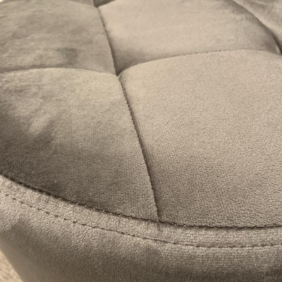 Im so happy with the material and firmness of the seat when sat on. The item description said “faux leather” but it’s more a velvet material as you can see in my photos. I’m very pleased with the velvet look! It took me awhile to find a tall swivel vanity stool, it’s perfect!