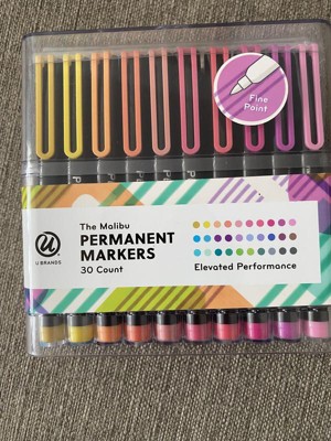 U Brands 30pk Permanent Markers Multicolored: 1.2mm Point, Pocket Clip, Cute School Supplies, Art & Stationery, Ages 14+