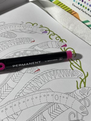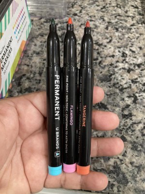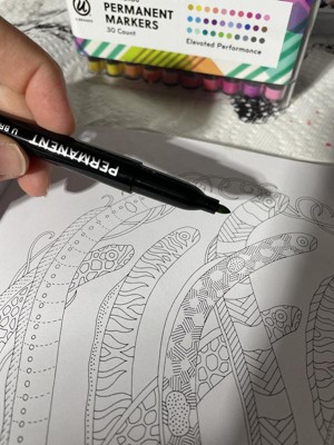 The U Brands 30pk Permanent Markers are fun to color with. I love all of the colors. My kids and I love to color and draw with them. We have had them for a while now and they have lasted this long. I love the container they come in, it helps keep them organized.