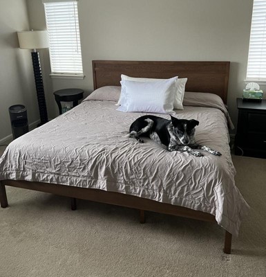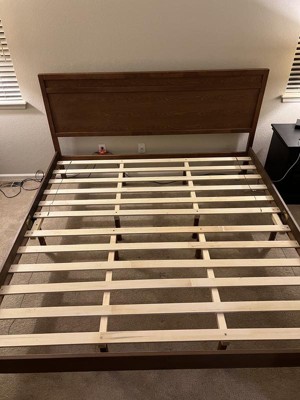 [This review was collected as part of a promotion.] We use this bedframe in our guest room. It's very cute. The instructions for assembly were easy to follow. I love the look over the platform bed. It's simple yet stylish. It seems to be solid. A good buy. I only dropped in 1 star, just because things are made the way they used to be. This is still a diy bedframe, so adjust your expectations.