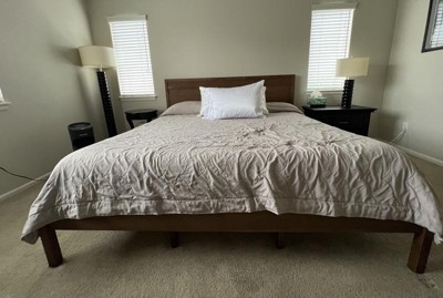 [This review was collected as part of a promotion.] Reviewing Kingston King Size Solid Wood Platform Bed with Wooden Slats and Headboard. This piece is gorgeous! Great quality wood and a pretty gray color. I love that it doesn’t need a box spring. Just popped my mattress in and it was perfect.