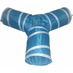 The Pet Life 3-Way Kitting-Go-Seek Interactive collapsible passage Kitty Cat Tunnel is composed of crackle tear-proof polyester and a durable lightweight inner wiring frame. Features 3 connecting striped expandable tunnels with a peep hole located at the center. Great for usage with multiple cats. The Cat tunnel completely collapses and folds. perfect for outdoor fun or travel. Perfect for all sized cats. Available in Multiple Colors.