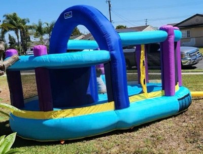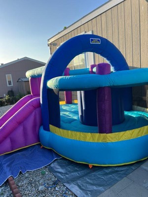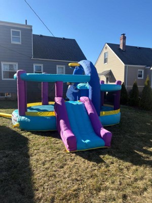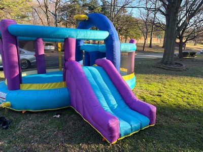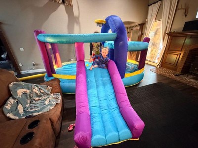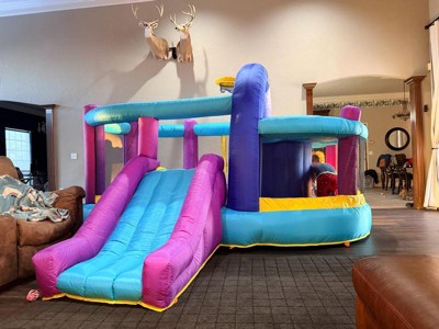 [This review was collected as part of a promotion.] My kids couldn’t wait for this to come! I was worried it would take up time to inflate but to my surprise It was super fast to inflate! The box says within two minutes! I agree it’s very fast! The anchors were helpful in keeping it down! I love the ties on the inflation side that helps keep it locked in so the blower doesn’t move! Deflating it was super easy and you’re able to put away in less than 5 minutes! I wish it was more firm but overall love it and how easy it is to assemble!