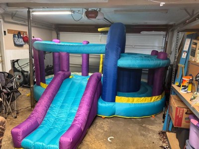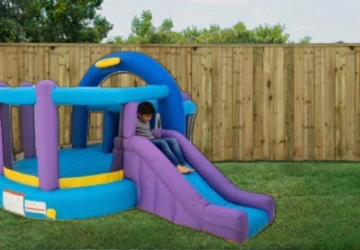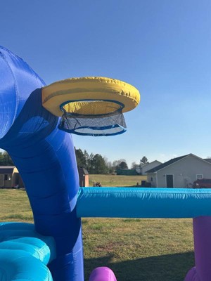 [This review was collected as part of a promotion.] We had so much fun with the sportspower 3-1 inflatable bounce house. Set up was not bad and super quick it also comes with the blower that worked really well. This size is great for my 7 and 3 year old they both played without feeling crowded. I also appreciate the safety features like the mesh sides. The slide add extra excitement. My kids love the hoops, they love throwing the ball around trying to make baskets. Deflation only took a few minutes and it comes with the carry bag for it.