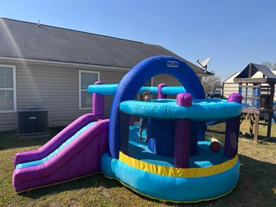 [This review was collected as part of a promotion.] I received Sportspower 3-in-1 Inflatable Bounce House with Slide, Hoop & Whack-A-Play Game free to try for my honest opinion. My kids are OBSESSED with this. It was pretty easy to setup and inflates quickly, and there’s so much for them to do with the slide, hoop, and bounce area. The only thing I will say is the stakes that come with it aren’t metal so they were a little hard to get into my ground. I ended up getting metal ones and those worked much better. But overall, this has been such a hit and keeps them entertained for hours. Definitely worth it!