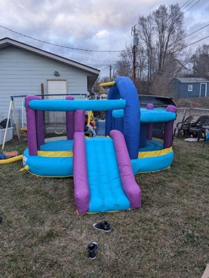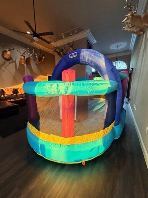 [This review was collected as part of a promotion.] This bounce house is so cool! We set it up before the winter weather set in and we didn't get a photo, and haven't put it back out since its been cold, but my kid had a blast on it! Its a great size and fits a couple kids safely! Love the hoop too! It inflated within minutes. This is the best thing for my kid! A great way to get outside and exercise for the kids!!