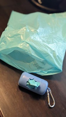 Great little bag dispenser! Love the bright color of the dispenser and bags. The star design of the dispenser opening allows you to easily get the bag you need, which is especially helpful when walking to dog with the my kids in tow!