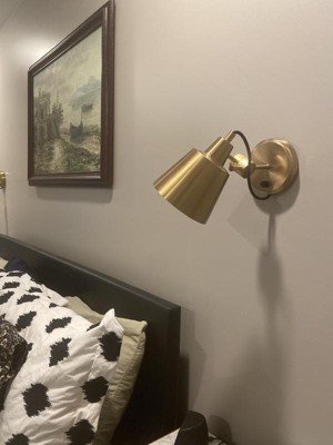 Possini Euro Design Modern Wall Light Sconces Set of 2 Warm Brass Hardwired 5 3/4" Fixture Swivel Up Down for Bedroom Bathroom Reading Living Room