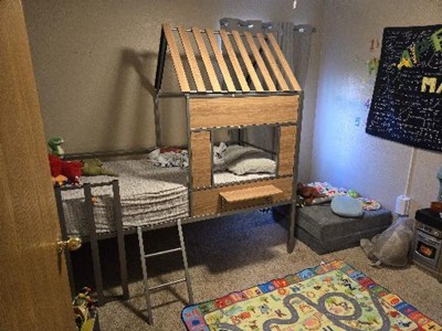 This bed is labor intensive to put together and will take a few hours. Once together it is a little wiggles, so would suggest putting it against more walls to keep stability. We have a 10in mattress on it which just barely fits. Our kid is 4 and loves the new bed, especially the fort like aspect with the roof.