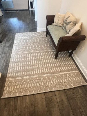 Add a dash of comfort and subtle style to your abode with this Moroccan Rectangular Woven Indoor/Outdoor Rug from Threshold™. This rectangular woven area rug features a Moroccan pattern in neutral hues for an elegant look that will perfectly tie together your indoor or outdoor decor. An easy pairing with a wide variety of decor themes, this fade-, UV- and stain-resistant accent rug features a flat-pile construction, making it highly versatile and easy to place in your living room, entryway and more.