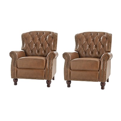 Justine Transitiona Wooden Upholstery Genuine Leather Recliner with Nailhead Trim for Living Room and Bedroom| ART OF LIVING DESIGNS-CAMEL