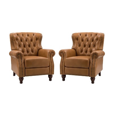 Justine Transitiona Wooden Upholstery Genuine Leather Recliner With Nailhead Trim For Living Room And Bedroom| ART OF LIVING DESIGNS-BEIGE