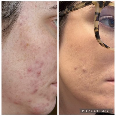 I have adult cystic acne and I needed something that covers well but looks…natural. This did the job without globbing it on! I am using a primer, a little concealer, Fenty foundation, a powder, and a spray. They really worked well together, even with all being different brands. I know the before and after pics ain't cute, but wanted to show how well it really works.