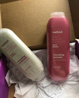 [This review was collected as part of a promotion.] El duo de shampoo y acondicionador Voluminizador de Method de la línea Pure Peace tiene una infusión de peoni, agua de rosas y proteína de quinoa. los cuales dejan una fragancia ligera a dulce en tu cabello, la mejor parte es que si provee volumen al momento del secado. En esta ocasión no me seque el cabello con la secadora, lo deje secar libre por falta de tiempo, pero si se puede apreciar como da un ligero volumen a mi cabello además de dejarlo con un brillo hermoso y mucha sedosidad. Totalmente recomendado si tienes el cabello fino como yo y te encantaría que se viera con volumen sin tanto esfuerzo El Shampoo 🧴 te deja el cabello súper limpio, precioso y no se necesita usar demasiado