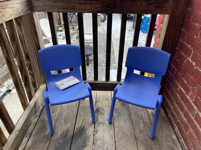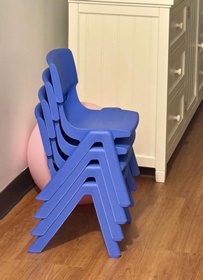 [This review was collected as part of a promotion.] These vibrant school chairs are the perfect addition to a play room! They fit right into our colorful space, and add bright utility to the room. These chairs stacked right next to a dresser and have a small footprint. They’re not heavy and could easily be transported to grandma/grandpa’s home for visits. The seats are great for toddler aged kids and offer an eye catching solution to children’s seating needs.