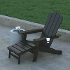 Give your commercial or residential outdoor spaces an instant upgrade and lots of cozy comfort with this set of 2 all-weather Adirondack style chairs with pullout ottomans. Beautifully crafted to fit in any décor, these outdoor patio chairs are ideal for your outdoor lounge areas as well as poolside and can pull double duty as indoor seating. The supportive vertical back paired with the slanted seat with a waterfall front allows your whole body to relax. Extra wide arms relieve tension from the neck and shoulders and boast a slide out cupholder on the right side to free up your hands. Comprised of HDPE, these patio chairs mimic the look of wood, but are stronger and don't require any back-breaking labor for upkeep. The faux wood composition will not rot, chip, or peel and no painting or sanding will ever be required. UV fade resistance allows you to leave these Adirondack chairs out year round and great looks mean you can bring them into your lobby or sunroom for comfort in any season. Assembly is quick and easy with the included tools and step-by-step instructions and a damp cloth is all that is needed to maintain the looks of these fabulous Adirondack chairs with cupholders. Available in multiple colors, feel free to mix and match or maintain a uniform color to suit your needs.