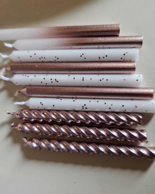 These rose gold candles from Spritz are really pretty. I love that they have different designs and they aren't all the same. They come in a pack of 10 and are perfect for birthdays or any other occasion where you might need candles. They can go with multiple themes or celebrations. They seem sturdier than other candles and they light easily. I used these for my daughters birthday. I received an incentive to write this review.