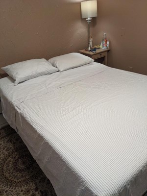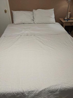 [This review was collected as part of a promotion.] I love the simple stripe design of this cotton queen sheet set by Madison Park Essentials, Easy wash and dry, fit my mattress perfect! Comfy to sleep on!