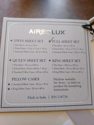 [This review was collected as part of a promotion.] The Aireolux sateen cotton sheets set full size comes in this beautiful gift box. Has direction and welcoming letter to your brand new sheets. Out of the box, these are a beautiful creamed color. Soft and not a wrinkle on any of them. Placing them on the bed they look like some of the most expensive sheets I own. I jumped in the bed in the evening and felt as if I was i one of the most luxurious beds I have ever been in. These are a perfect gift as well as for yourself. I love the comfort and the price is reasonable.