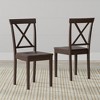 - 48" Rectangular Solid Wood Dining Table dimensions: Overall: 47.24" W x 31.5" D x 29.33"; Table top thickness: .71"; Table Apron: 1.91" H x .71" D; X-Back Dining Chair dimensions: 35.04" H x 16.54" W x 19.29" D; Seat height from floor: 17.52"; Seat dimensions: 16.14" W x 15.55" D x .87" H; Width between Rear Legs at Seat: 12.6"