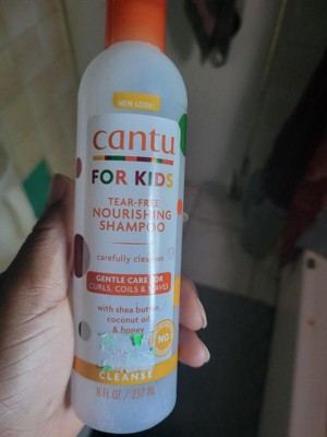 Can't for kids tear free nourishing shampoo is a gentle, moisturizing wash that blends Shea butter, coconut oil and honey to keep children's curls,coils and waves soft. It cleanses nicely and leaves hair easy to detangle. It leaves no residue behind and its safe to use on sensitive scalp and delicate kids hair.