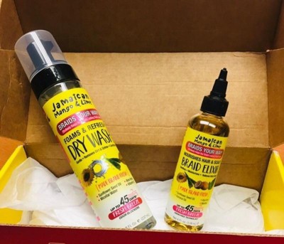 Indulge in the cruelty-free and natural brilliance of Jamaican Mango & Lime Braid Elixir, the #1 choice for braid and locs care. Infused with sunflower seed oil, coconut oil, aloe vera, and menthol, this elixir delivers ultimate hydration and a soothing, cruelty-free sensation to the scalp.