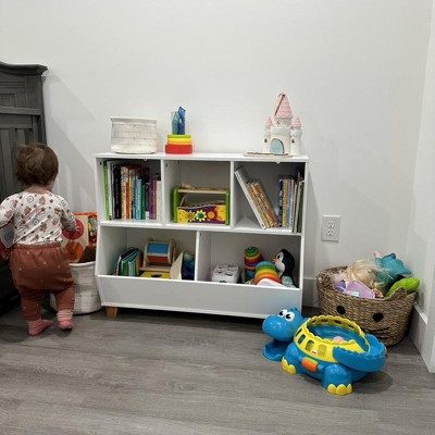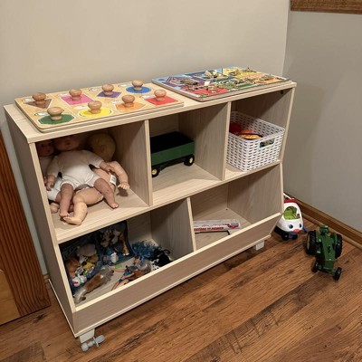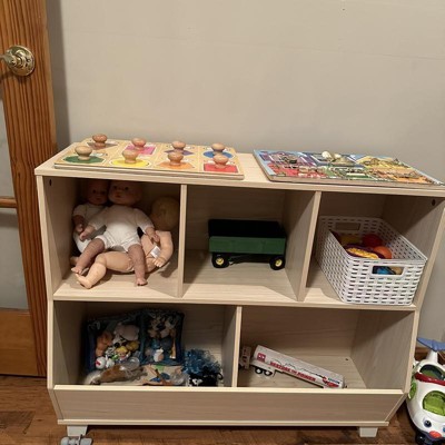 RiverRidge Kids' CatchAll Playroom 35" Toy Storage Organizer with 3 Cubbies and 2 Storage Compartments Light Woodgrain: Kids Bookshelf