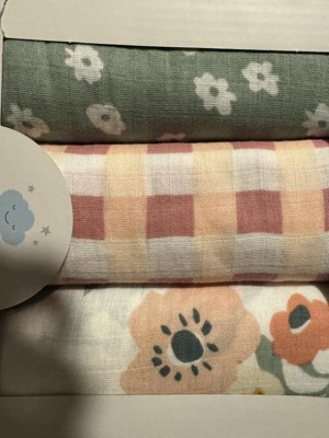 Muslin Swaddle Baby Blanket - Floral Gingham - 3pk - Cloud Island™: Cotton, 47" x 47", 180 Thread Count