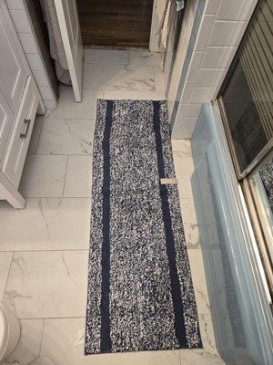 20"x60" Home Heathered Hotel Bath Rug Runner Navy/White - VCNY: Modern Microfiber, Latex Backed, Machine Washable