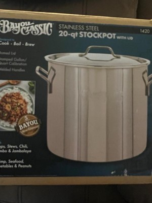 Bayou Classic 20-Quart Economy Stainless Kettle with Domed Lid and Welded Handles Standard Stockpot for Chili, Soups, Stews, and Gumbo