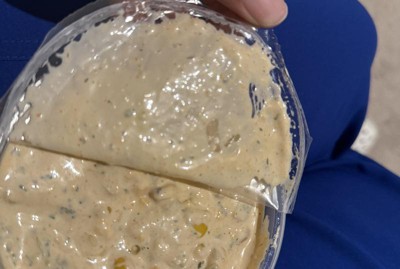 Taste of mayonnaise or thousand island tate with corn in it. Threw it out, sorry that's a miss for me.