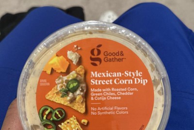 Serve family, friends or party guests a crowd-pleasing appetizer with this Mexican-Style Street Corn Dip from Good & Gather™. Made with roasted corn, green chiles, cheddar and cotija cheese, this creamy dip with a slightly spicy kick is inspired by elote, the popular Mexican street food. Great for dipping tortilla chips, crackers and much more.