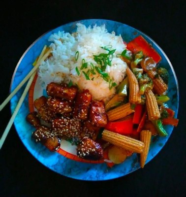 [This review was collected as part of a promotion.] I absolutely love rice and eat it at least once a week! I love all different types of rice but my favorite is jasmine. This RiceSelect Organic Jasmati White Rice is the perfect mix of jasmine and basmati rice! It is very fragrant as soon as you open the container, it smells so good! I use a small rice cooker to cook my rice and it comes out perfect everytime, including this jasmati rice! I paired this RiceSelect rice with teriyaki stir fry vegetables like mini corn, carrots, broccoli, water chestnuts, & onions as well as with general tso tofu! I topped the rice with fresh cut green onions and it was such a delicious meal! This jasmati rice is definitely unique and is so yummy!