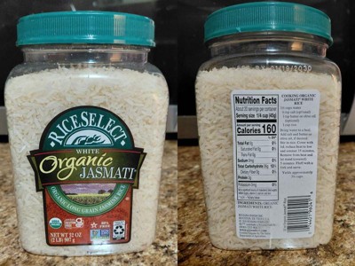 RiceSelect Organic Jasmati Rice is a premium-quality organic jasmine-style rice that's non-GMO verified by the non-GMO project. Each serving contains 3g of protein, zero saturated fat, trans fat, cholesterol, sugars, or sodium. This 32 oz. jar of rice is proudly grown in the US and makes for an excellent dietary staple.