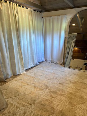 [This review was collected as part of a promotion.] This rug looks really great in my living room, and it feels great too. I was looking for something that would keep our feet warm in the winter and this just hit the Mark in every way possible. I love the texture, design, and color. I was a little bit iffy about the tassels - I didn’t know how it was going to look. Well, I’m super happy and for the price... amazing!