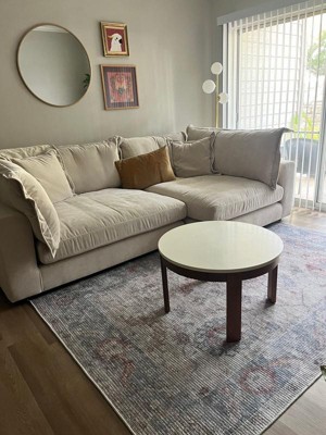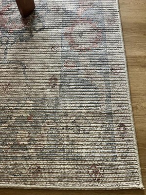 [This review was collected as part of a promotion.] I LOVE this rug so much more than I expected. However, I would describe the color more as blue than gray. And has some soft and mauve pinks and yellow/gold. It’s so pretty in person. It’s not the softest and on the thin side. A rug pad would probably be a nice addition but for the price point I have zero complaints.