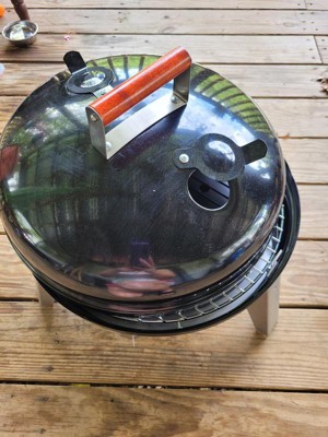 [This review was collected as part of a promotion.] I got this American lock an go charcoal grill, and so far so good we've took it camping a few times easy to store an get back out the top locking together with the bottom is great makes it so easy to take with you even on an evening fishing trip you can take it to make dinner on. The wooden handle is nice to. It was pretty easy to put together, has air holes in top an bottom. It's easy to empty ashes out. This thing is very handy if your a person on the go.. the legs are nice an sturdy. Very nice very happy with it..