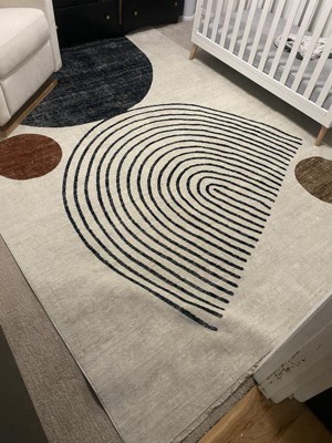 [This review was collected as part of a promotion.] Stunning! I had mistakenly thought the dark part of rug was black; turns out it's navy. I like the design well enough to keep it anyway.