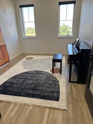 Love this rug. It is thin but perfect with a rug pad. Makes our home office/music room feel like home.