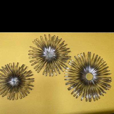 Set of 3 Metal Sunburst Wall Decors with Mirror Accent Silver - Olivia & May: Iron Artwork, Vertical Display, Spot Clean