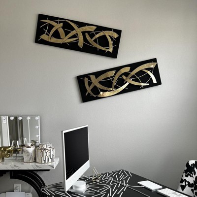 Set of 2 Metal Abstract Dimensional Wall Decors with Wood Backing Black/Gold - Olivia & May: Iron Artwork, Indoor Vertical Display