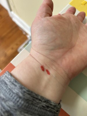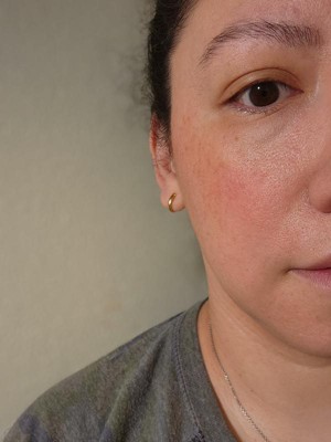 This blush is too dark for me. I wish the applicator had a little more suction as you pull out. I found I had way too much product on the wand. My first time putting it on I accidentally put too much on my cheek. Oops. Also, for the sake of this review I left the dots on my cheek a tad too long and had to really rub to blend. If applied correctly, this blush does blend nicely with my blush brush.
