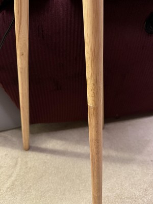 Likes: Great design; softer, muted light from long lampshade; stability from tripod base. Dislikes: cheap wood sections not well matched -- one leg has two shades of wood; hard to screw in evenly (was afraid I was going to strip out screw trying about 3 times on one leg); lamp shade not that great of quality, ring fastener darkens lamp edge; and the foot pedal is too far from the lamp. My husband gets migraines, and the softer light will be good for him, so we will keep it, but I'm not happy with the quality. Maybe I'm wrong, but I'm feeling like if you want an actual lampshade, you have to spend more than $50 and go in person to a furniture or other store. Not liking what I'm finding online these days.