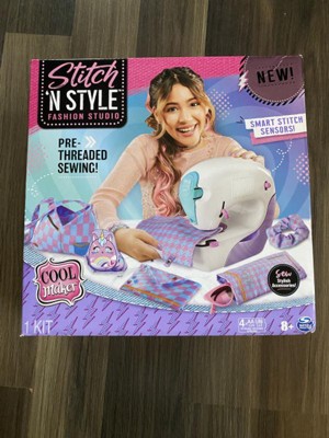 [This review was collected as part of a promotion.] My daughter was very excited that we were chosen to try out this Fashion studio Activity Kit! The idea is great, its a sewing machine with a needle but the needle is completely covered from all sides so little fingers don't get pricked. It functions like a regular sewing machine but it uses "Smart Stitch Sensors" , its supposed to sense the lines on the fabric and know when to automatically start sewing and when to stop sewing all by itself. All it has is a start button and the machine takes off by itself. I found that the machine wasn't very good at detecting the lines on the fabric and it just sewed willy nilly. You need to guide the fabric through without pushing or pulling by it definitely didn't stay in a straight line and readjusting was needed. I like that it came with the needle prethreded and that it came with all the fabric we needed to make a few different projects, as well as the template to cut out. We managed to make the sunglasses case (first project) without too many problems other than wonky lines, but the second project was a ponytail and that had some difficulties. For that project it required you to double up the fabric and sew through 4 layers. The machine was not having it. Everytime we tried to sew the ponytail ends together (last step), the machine/ needle kept getting jammed. I'd fix it, reposition the fabric and try and but it just kept jamming, we followed the instruction to a T , even tried to flatten the fabric to make it thinner. Nothing worked. After the 4th attempt, my daughter wasn't feeling it anymore, and I told her I would just finish the ponytail by hand (needle and thread). That's where we stopped with the machine and I'm not too sure if we will be trying it out again soon.