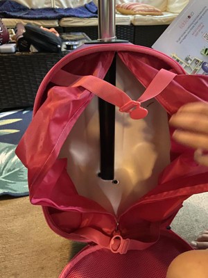 This luggage scooter is such a cool invention and my 6 year old daughter is absolutely obsessed. The scooter part of the luggage easily folds inside and out and once it’s folded, the bag can be rolled around by the handle. The light up wheels are very cool as well! The bag is spacious and can fit a lot of necessities as a carry on. The only thing is that the steering is a bit difficult as the wheel does not turn left or right and the scooter seems a bit unstable.