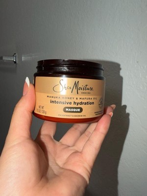 This is the Intensive Hydration Masque with Manuka Honey and Mafura Oil by SheaMoisture. It is a deep-conditioning treatment specifically designed to revitalize dry, damaged, or over-processed hair, and is particularly popular for curly textures. Manuka honey acts as a natural humectant that attracts and retains moisture within the hair fiber. Mafura oil and Baobab oil provide essential fatty acids and nutrients that soften the hair and strengthen the follicles. It contains African fig extract—rich in Vitamin C—which helps keep hair vibrant and healthy. It is free from sulfates, parabens, phthalates, mineral oil, and petrolatum. It feels silky and luxurious. It is a thick, creamy masque with a floral-fruity scent and warm undertones. It doesn't have the typical smell of plain kitchen honey, but rather something much more sophisticated.