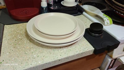 [This review was collected as part of a promotion.] I received a 4 piece setting during a promotional campaign. These are very nice dishes. The plates a plenty big enough and the bowls are perfect size. They look really nice sittion on the dinner table too! I just wish that it would have been an 8pc setting instead of a 4 piece.